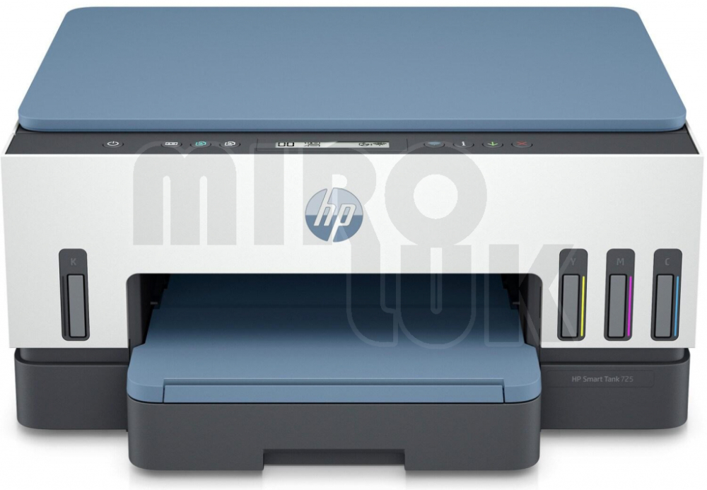 | Obsah balení | HP Smart Tank 725 All-in-One; 3x 135ml originální lahvička s černým inkoustem HP GT53XL; Originální lahvička s azurovým inkoustem HP GT52; Originální lahvička s purpurovým inkoustem HP GT52; Originální lahvička se žlutým inkoustem HP GT52; Napájecí kabel; Černá tisková hlava HP; Tříbarevná tisková hlava HP; Průvodce nastavením; Referenční příručka; Leták s upozorněním na inkoust; Regulační leták; Záruční letáky; |